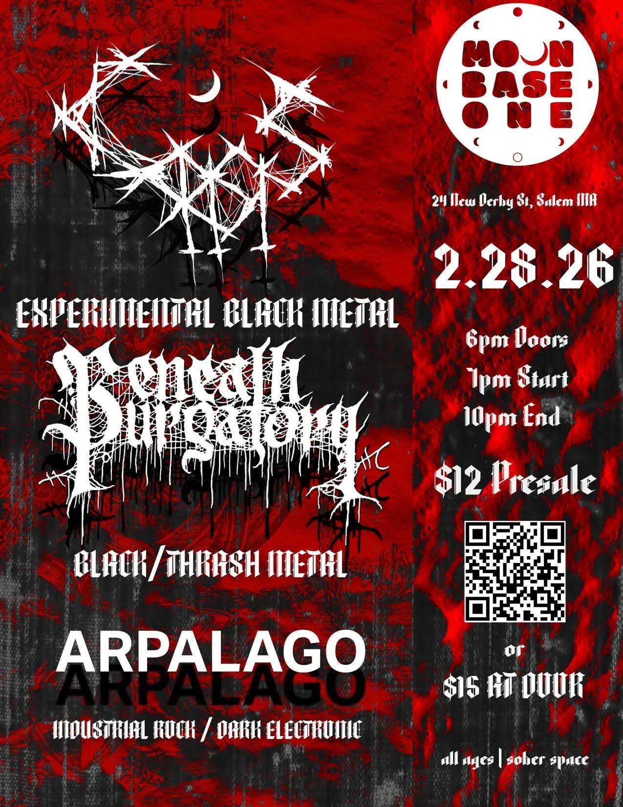 02/28/2026 crysys, ARPALAGO, NECRALANT Saturday, February 28, 2026 6:00 PM 10:00 PM MOON BASE ONE 24 New Derby Street Salem, MA, 01970 United States (map) Google Calendar ICS