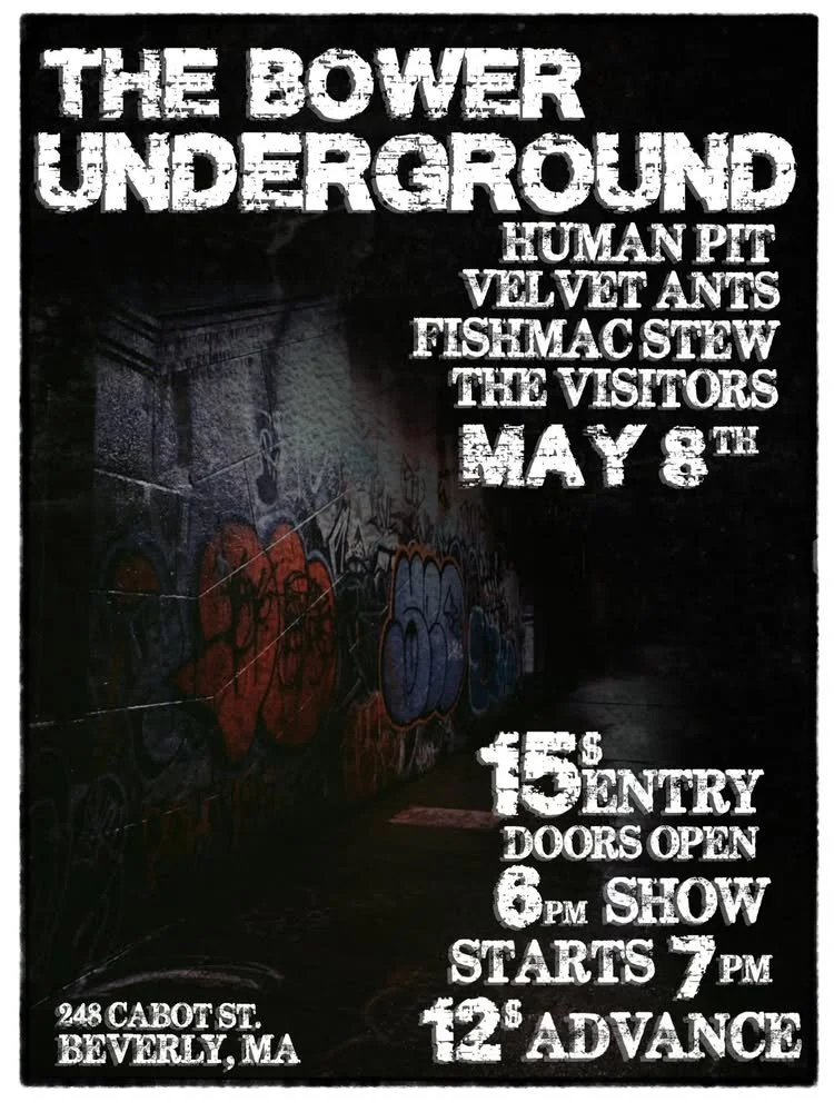 5/8/26 Human Pits, Velvet Ants, Fishmac Stew, the Visitors Friday, May 8, 2026 6:00 PM 10:00 PM The Bower 248 Cabot Street Beverly, MA, 01915 United States (map) Google Calendar ICS